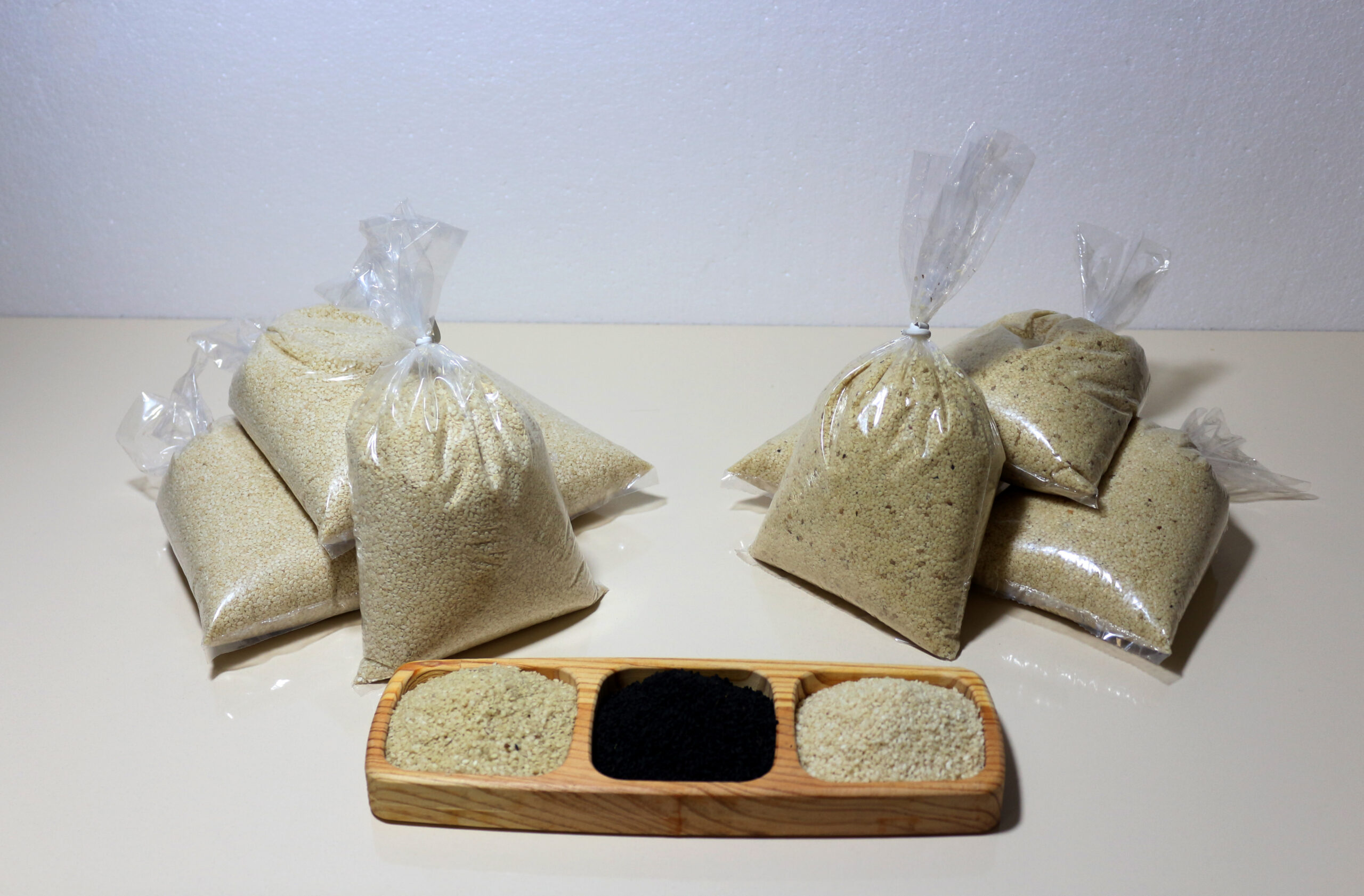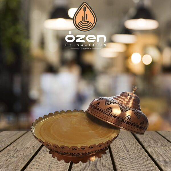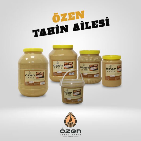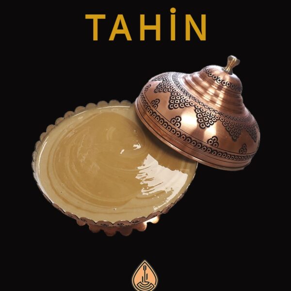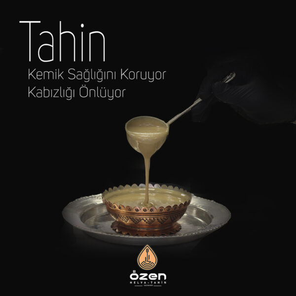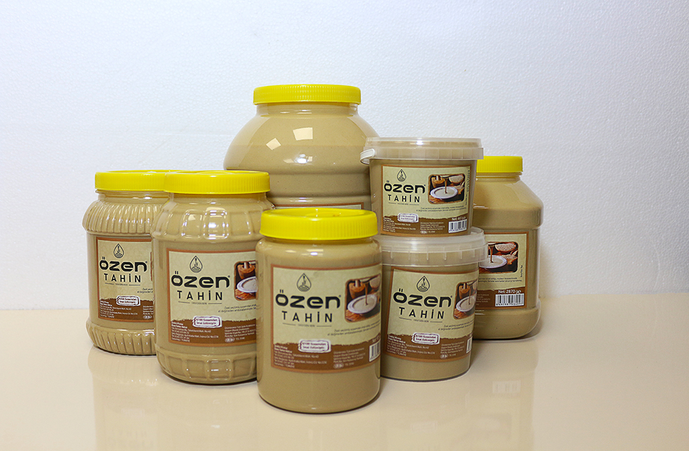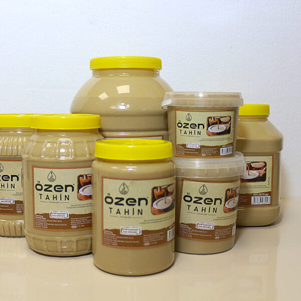 Tahin, helva çeşitlerinin yanı sıra (sade, kakaolu ve fıstıklı), taş değirmende üretilen 1. sınıf susamlardan elde edilen tahin.